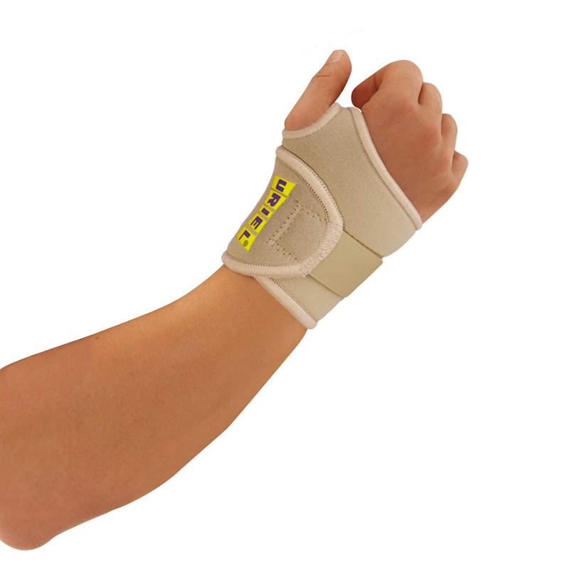 עשוי מניאופרן, בחלק הפנימי מבד מגבת כותנה, סופג זיעה. לוחץ בצורה היקפית ותומך בבסיס האגודל, להגבלת תנועת פרק כף היד.