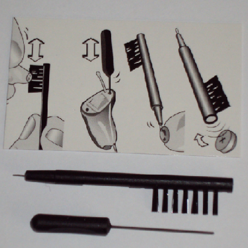 - לפני הרכבת המכשיר חשוב להבריש בעדינות את כיפת הסיליקון בעזרת מברשת קטנה. ברוב מכשירי השמיעה המברשת מגיעה כחלק מהחבילה.