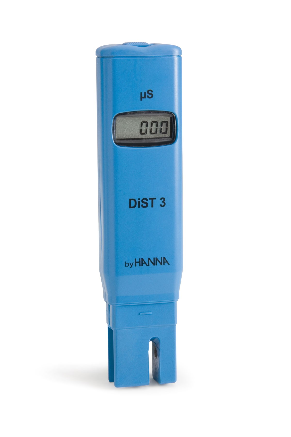The DiST 3 features a large multi-level LCD which displays both electrolytic conductivity (EC) and temperature readings simultaneously. The EC readings are displayed with a 1 µS/cm resolution and with an accuracy of ±2% full scale. The conductivity range of the HI98303 is from 0 to 2000 µS/cm. An exposed temperature sensor allows for rapid automatic temperature compensated conductivity measurements. Temperature can be set to display in ℃ or ℉. The LCD screen has stability and calibration tag indicators. The battery percent level is displayed at start up alerting the user to the remaining battery power that is available.