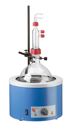 The CMUT Electromantle is used in wet chemistry to heat liquids in round bottom flasks. Its metal case is designed to remain "cool-to-the-touch" when in operation. For added safety, it has a grounded stainless steel earth screen covering the element and is double fused.