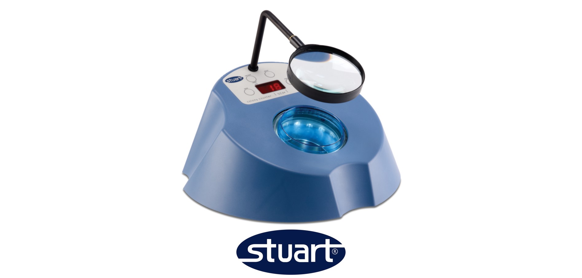 Sub-stage illumination by low energy bright LED's allows glare-free optimum viewing. A switchable black background is provided to enhance viewing of translucent and difficult to see colonies. Supplied with two Wolffhuegel graticules and dish centering adapters to facilitate use with 50mm to 90mm dishes. A choice of magnifiers and a printer are available as optional accessories.