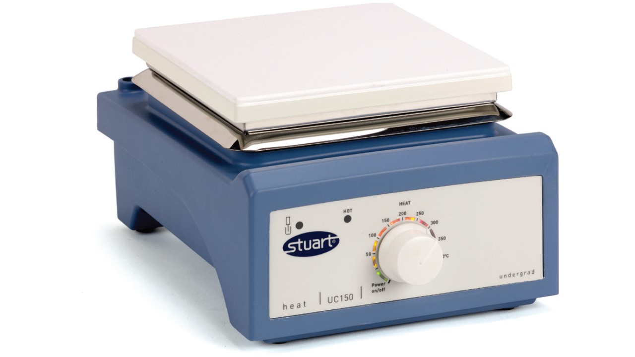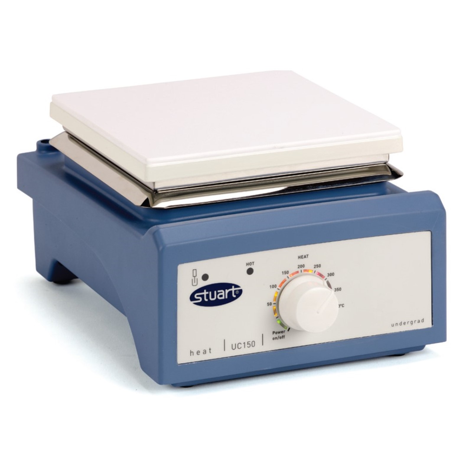 Model UC150 has a glass ceramic top which has excellent chemical resistance. The surface is easy to clean and allows high plate temperatures for faster heating.