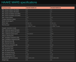 Technical data HAAKE MARS 40 HAAKE MARS 60