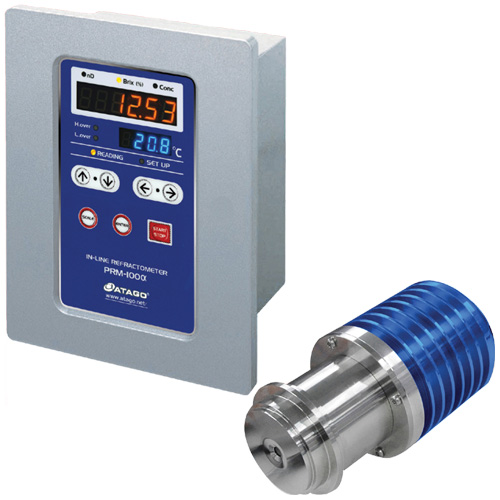 Simply attach the unit to a piping system to monitor food or beverage production, pharmaceutical production, industrial fluid, washing devices, dilution/mixing devices, etc. Continuously monitor water content and mixing ratio with successive measurements of refractive index, Brix, or concentration.