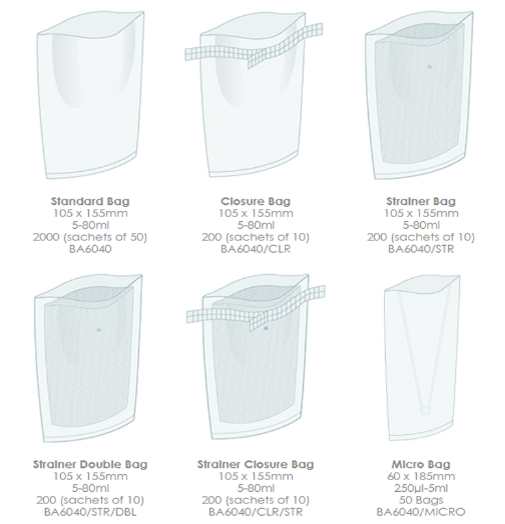 Enhanced Stomacher® 80 bag range features closure and strainer bag formats, double blender bags for biosafety and the new microBag for effective homogenisation and sample recovery below 1ml volumes.