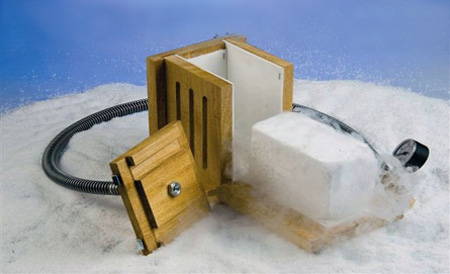 The DILVAC Portable Dry Ice Maker produces a block of approx. 1kg in weight in less than 2 minutes, and all you have to do is connect the unit to a cylinder of CO2, and turn on the tap. Remember, it has to be a liquid cylinder with an internal siphon.