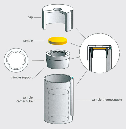 - Sample holders and caps made of aluminum, SiC and graphite for standard sample dimensions