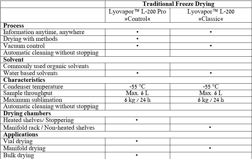As the first freeze dryer with Infinite-Control™, the compact Lyovapor L-200 offers unparalleled automation in sublimation. Easily create and run methods, log data, record charts in real-time and interact from anywhere at anytime with mobile devices.