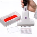 Multichannel Adjustable Tip SpacingThe VOYAGER adjustable tip spacing pipettes expand anywhere from 4.5 mm to 32.5 mm to accommodate a wide variety of micro plates, tube racks and gel boxes. By allowing the user to change the pipette’s spacing with one press of the button, the VOYAGER enables scientists to transfer multiple samples efficiently between labware of different sizes and configurations. The simple push of a button on the touch wheel interface opens or closes the tips to a spacing defined by the user. |